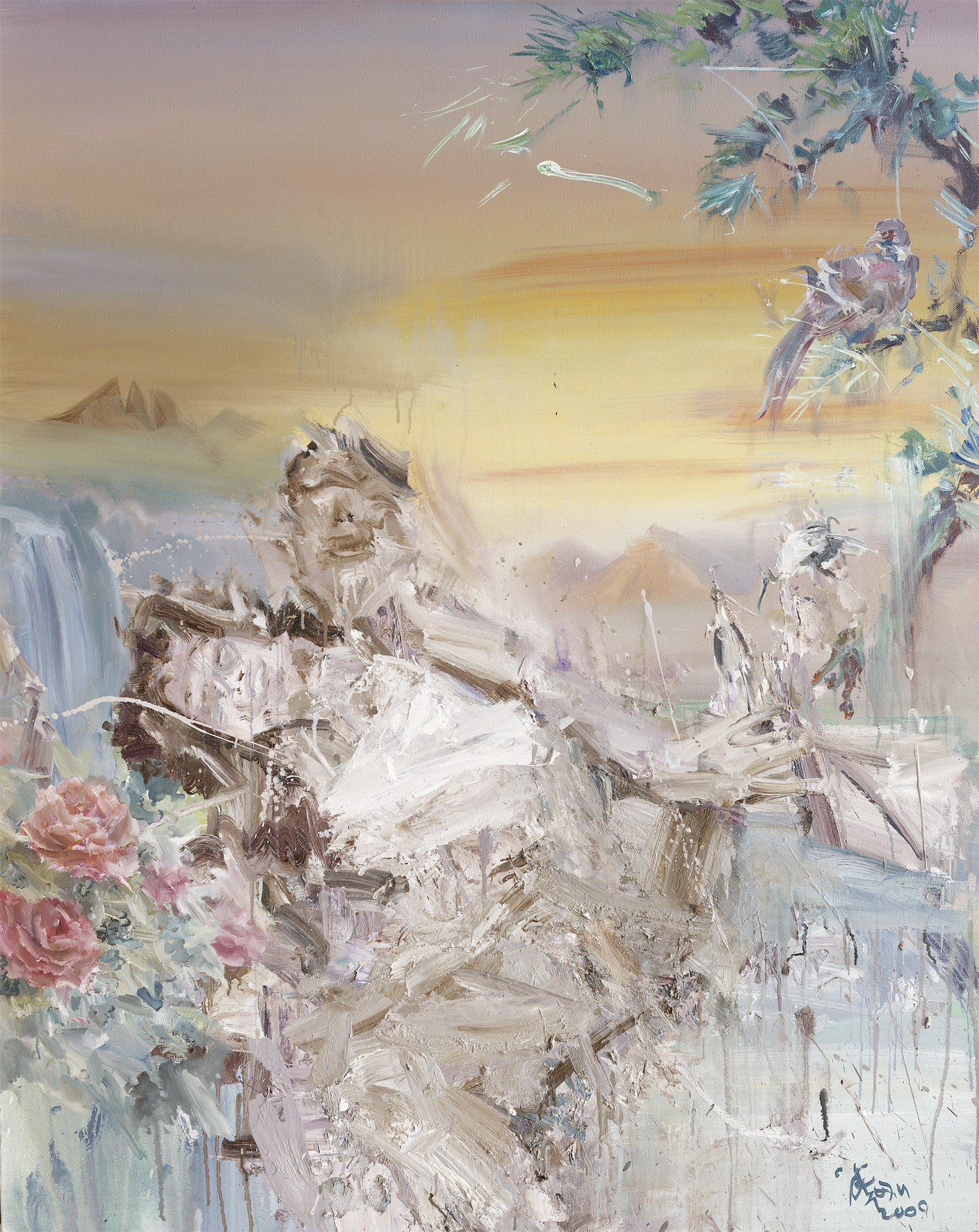 Medium: Oil colour on 16 pieces rotatable 4 sided bars covered